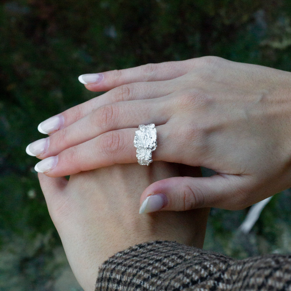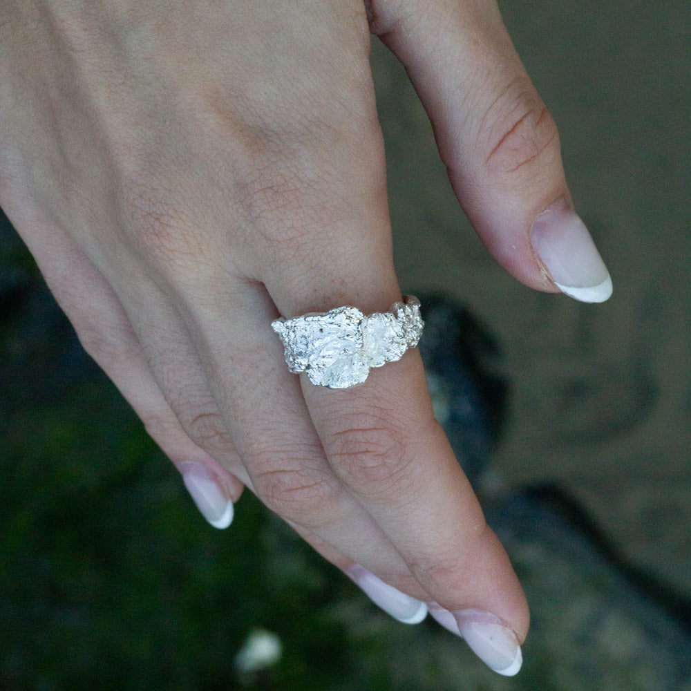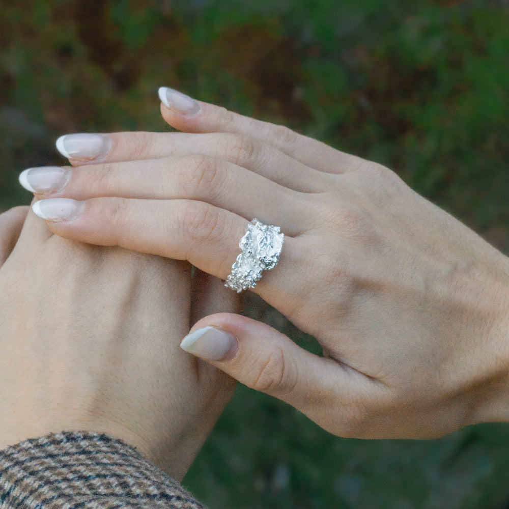 Introducing the spectacular organic .925 Sterling Silver Brielle Ring featuring that fabulous just-poured molten look in effortless glamour.