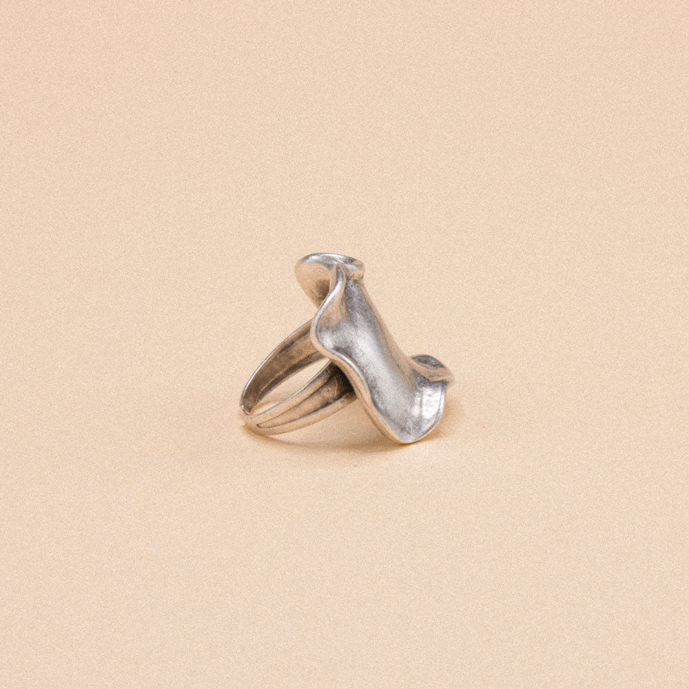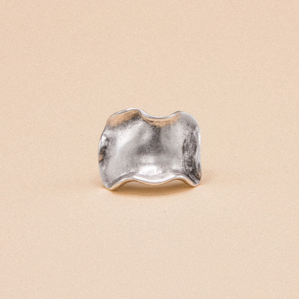 A solid adjustable ring with a lightly textured surface and wavy edges, offering a distinctive, artisanal style.