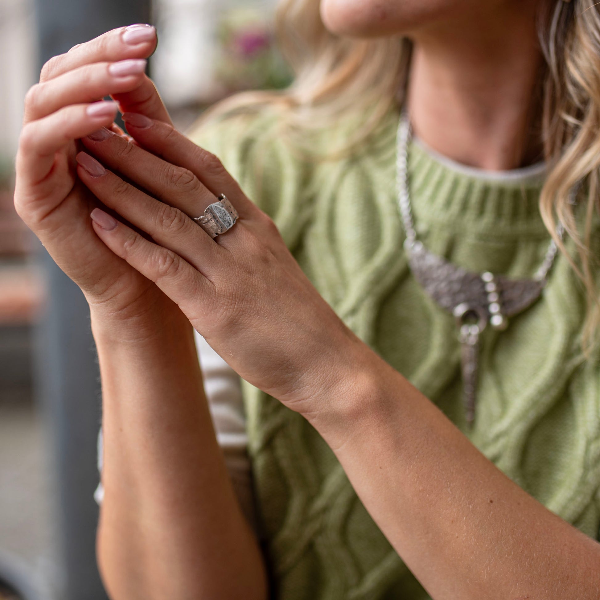 Upgrade your style with the Edie Ring - the ultimate must-have for any fashionista! This cool and natural piece features a unique textured design and is fully adjustable for the perfect fit.