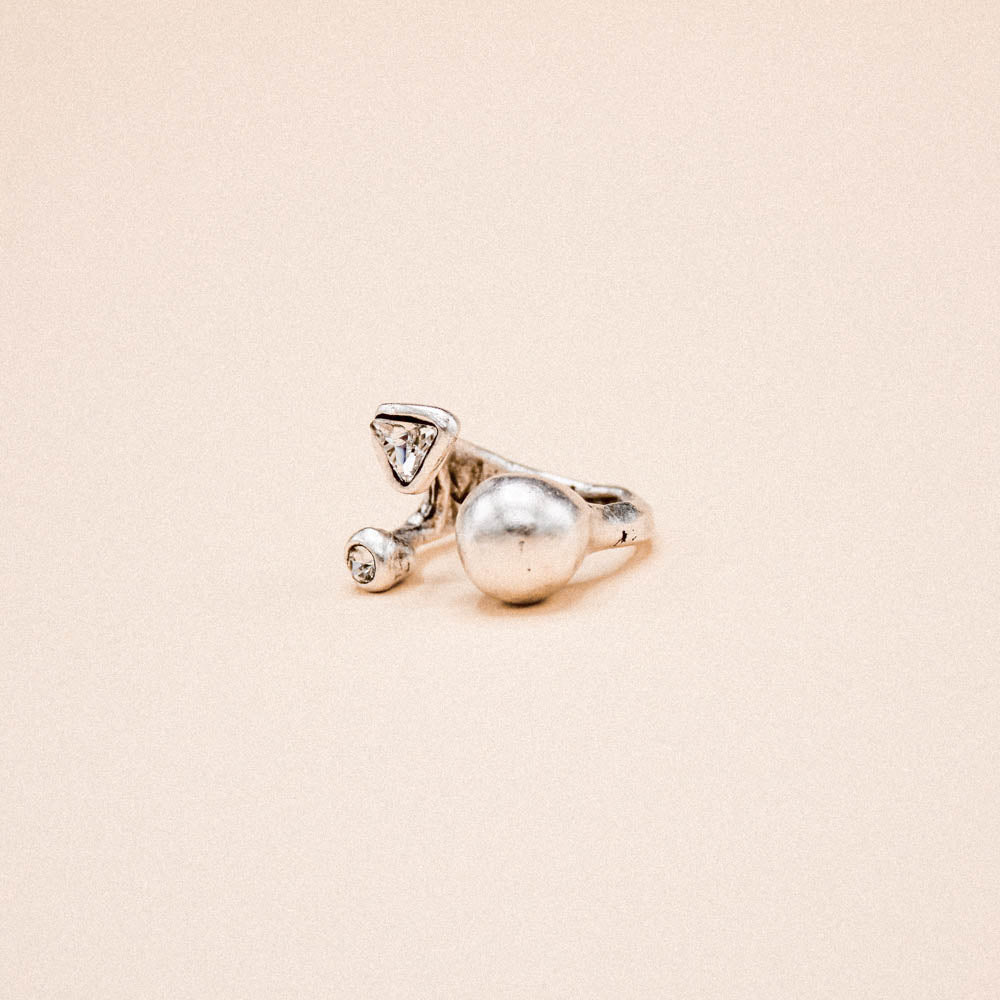 With an edgy design of contrasts, crystals stand up to a minimalist sphere to create a picture of glam and style.