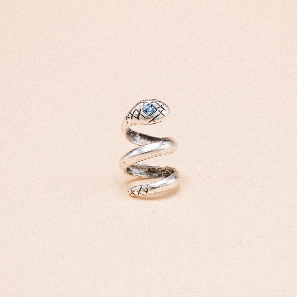 The Nikita Ring is a beautiful, serpentine design that coils around your finger with captivating grace with a stunning blue crystal that elevates this piece. A perfect balance of statement and simplicity to level-up any style.