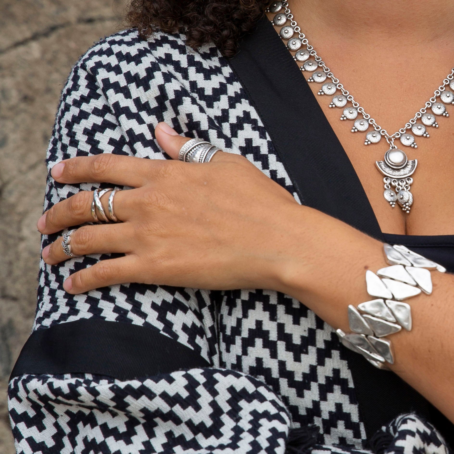 A hammered effect twisted ring, a true Treaty style classic! What's not to love. Wear her easily everyday. Consider her one of the best Treaty rings to try, if you haven't already.